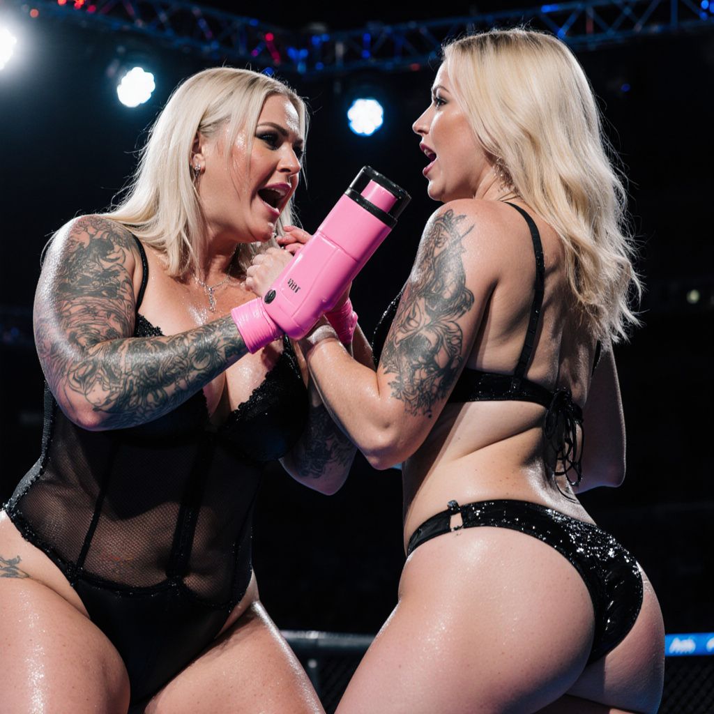 The madness didn't quit at singles versus pairs, though—enter the curvy crew, where glossybabe_ and mc-Olivia were duking it out in a feud denser than their figures, both slicking up like they're gearing for a slip-n-slide from the underworld. Glossybabe_, this inked-up blonde rebel, kicks things off in lingerie that hugs like a fever dream, then wham—she's unleashing a pink buzzer into the depths, vibrating like a jackhammer during a quake. She's got that bi energy, cheeks parted wider than a canyon after a mudslide, and just as you think she's maxed out, mc-Olivia swoops in, another white curve queen with fetish labels like bait on a hook, mounting toys that slither like beefed-up serpents from paradise lost. Their streams crashed like alternate dimensions—glossybabe_ flashing her tattooed glow, oiled chest shining like disco balls in a doomsday club, while mc-Olivia hits back with foot play and mouth symphonies that turn her guy into a groaning maestro. I kid you not, they seemed in sync at times—glossybabe_ bending with thong shoved aside, revealing voids that could eat stars, and mc-Olivia echoing it with her own arched sacrilege, toys slotting in like keys to chaos.
