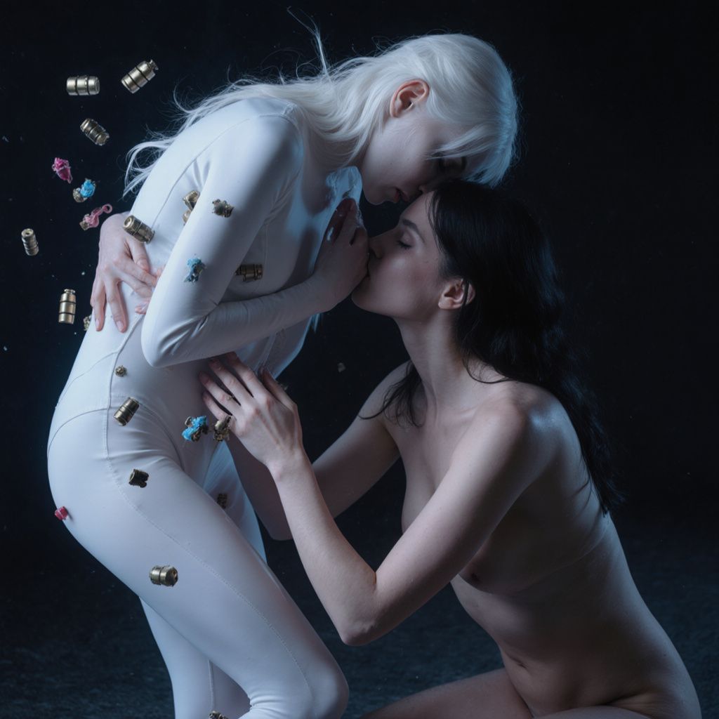 Then there's nadia_bliss, this mysterious white whirlwind who's got me questioning the laws of physics with her bent-over routines, hands roaming her own curves while she tosses in toys like grenades into a trench. She weaves in these tense, idle pauses that build suspense like a thriller flick right before the big scare. But hold your horses—pinkadele crashes the party like a bisexual force of nature, linking up with partners for these steamy tangos, two naked beauties kissing and licking their way through a rewritten Kama Sutra, fingers wandering into secret spots with toys waiting in the wings like loyal backups. It's like they're throwing shade at the solo stars—leo_kitty's duo dynamics clashing with pinkadele's group vibes—and honestly, I'm spilling coffee all over myself, thinking, "This is the moment tech and lust finally collide into pure chaos."
